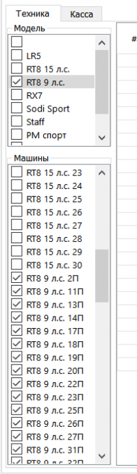 Для вызова окна статистики, выберите пункт меню «Администрирование-Статистика». Доступны 2 типа отчетов: по наработке машин на вкладке «Техника» и по сумме выручки на вкладке «Касса».